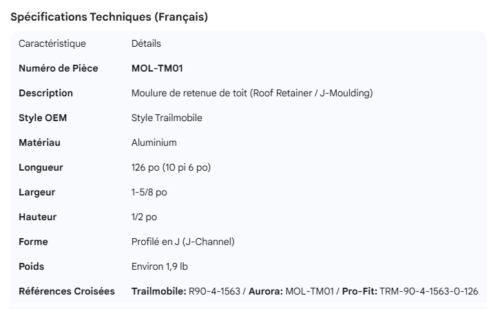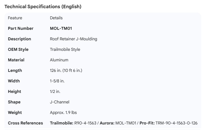 TRAILMOBILE ROOF TRIM ALUM 126"