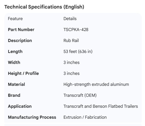 TRANSCRAFT RUB RAIL 53'