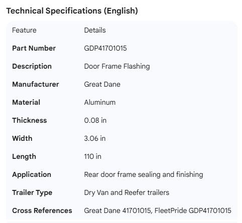 GREAT-DANE DOOR FRAME FLASHING .08"X3.06"X110"