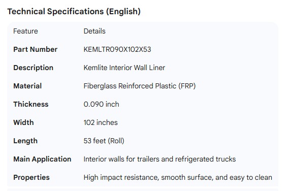 KEMLITE LINER .090" X 102" X 53'