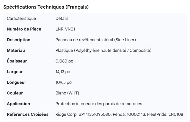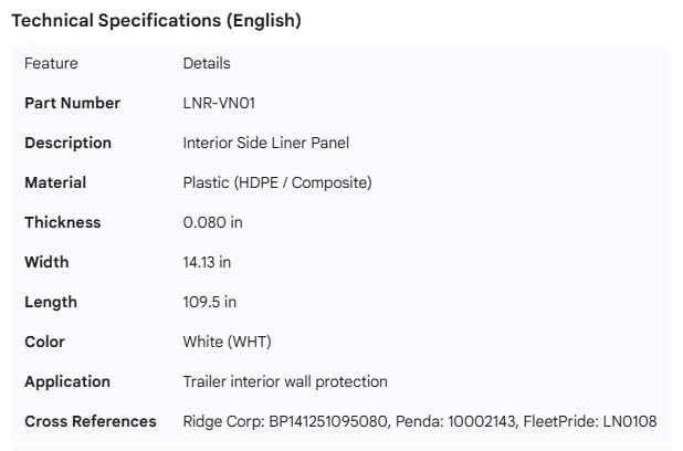 VANGUARD INTERIOR LINER 14" WIDE