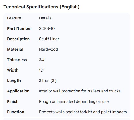 HARDWOOD SCUFF LINER 3/4" X 12" X 8'