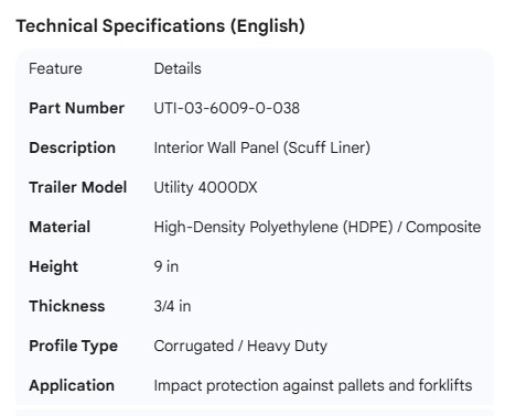 UTILITY 4000DX INTERIOR WALL PANEL 9" X 3/4