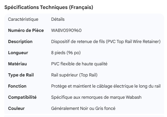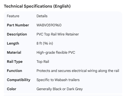 WABASH PVC TOP RAIL WIRE RETAINER 8FT