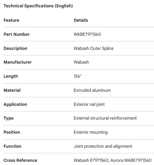 WABASH OUTER SPLICE 156"