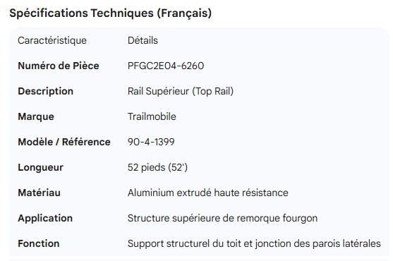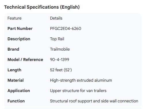 TRAILMOBILE TOP RAIL 52' 90-4-1399