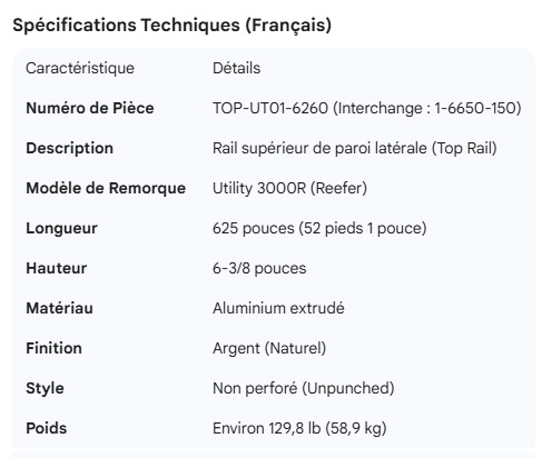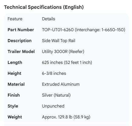 UTILITY TOP RAIL 3000R 52' 1-6650-150