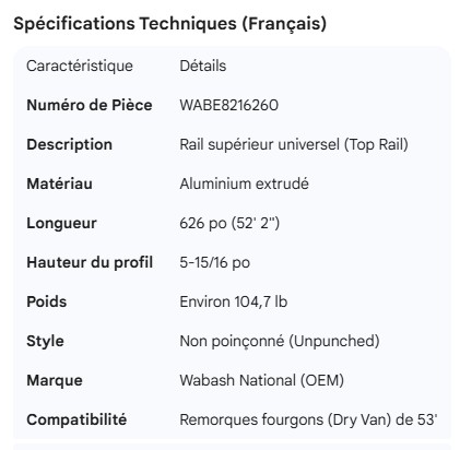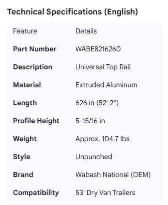 WABASH TOP RAIL UNIVERSAL