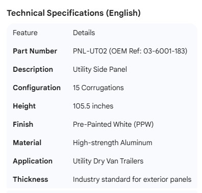 UTILITY SIDE PANEL 15 CORR 105.5" PPW 03-6001-183