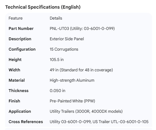 UTILITY SIDE PANEL 15 CORR 105.5" 3-6001-099