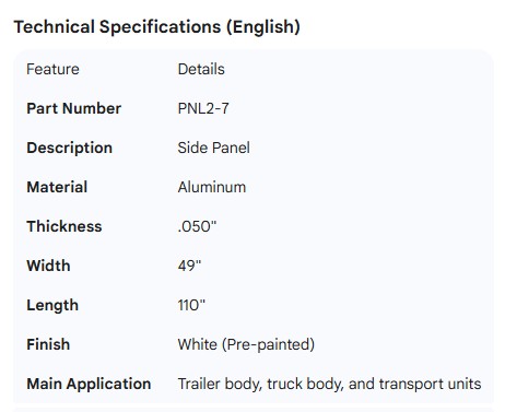 SIDE PANEL WHITE ALUMINUM .050" X 49" X110"