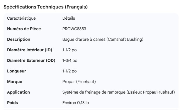 PROPAR CAMSHAFT BUSHING