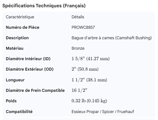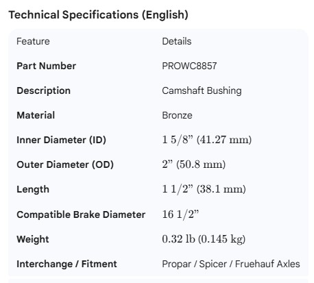 PROPAR CAMSHAFT BUSHING BRONZE