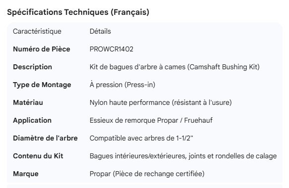 PROPAR CAMSHAFT BUSHING KIT
