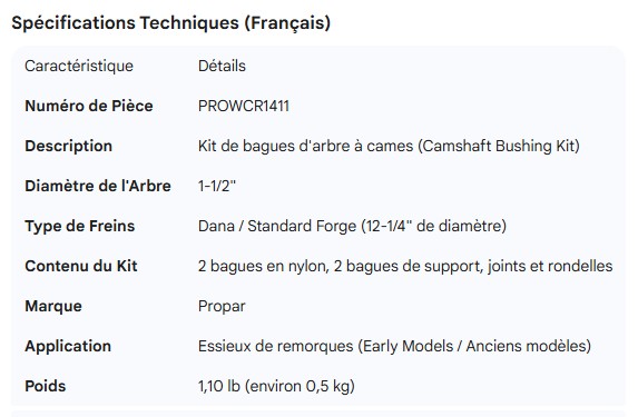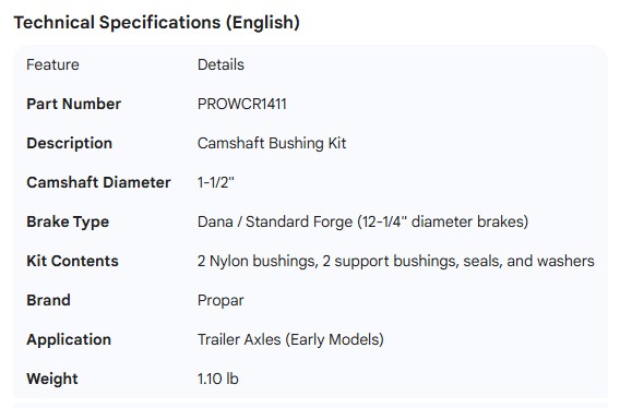 PROPAR CAMSHAFT BUSHING KIT STD FORGE DANA