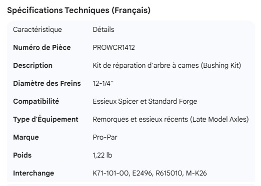 PROPAR CAMSHAFT BUSHING KIT