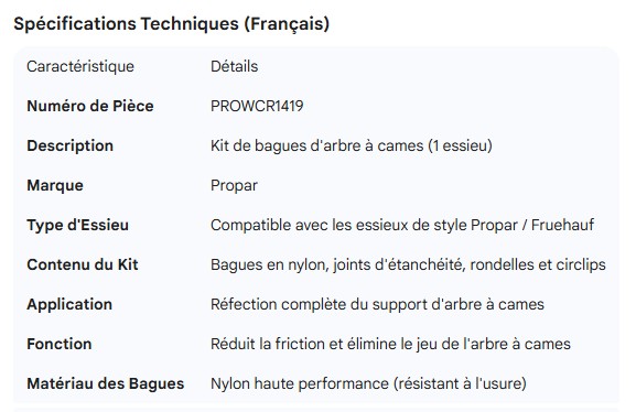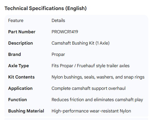 PROPAR CAMSHAFT BUSHING KIT 1 AXLE