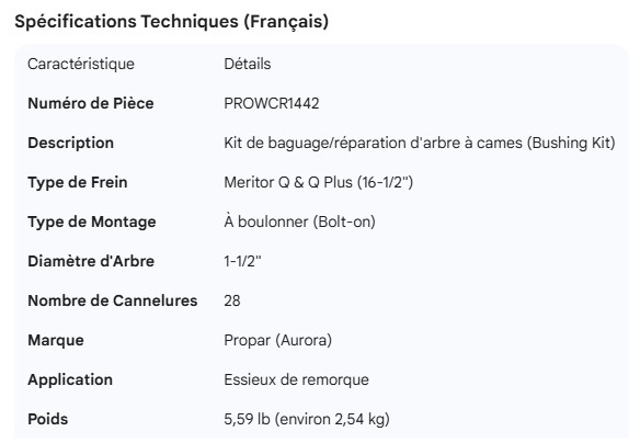 PROPAR CAMSHAFT BUSHING KIT