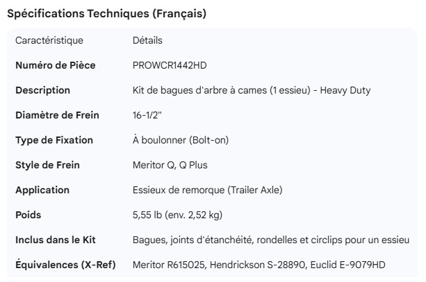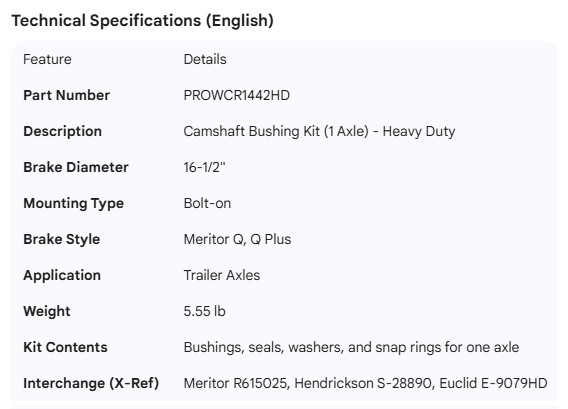 PROPAR CAMSHAFT BUSHING KIT 1 AXLE