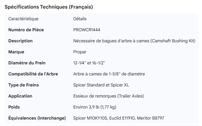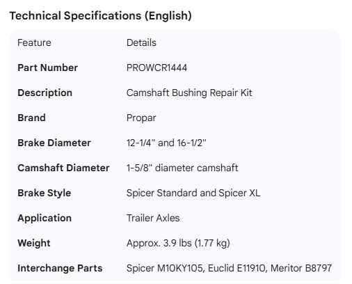 PROPAR CAMSHAFT BUSHING KIT
