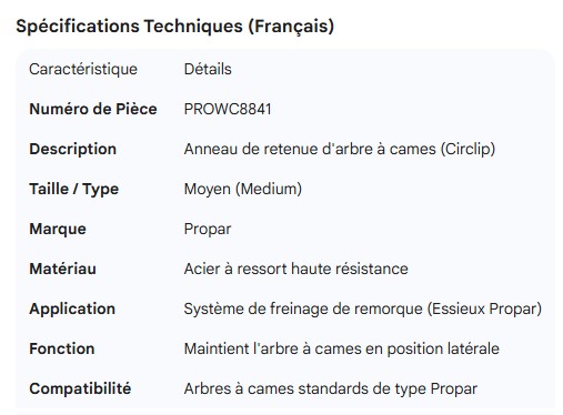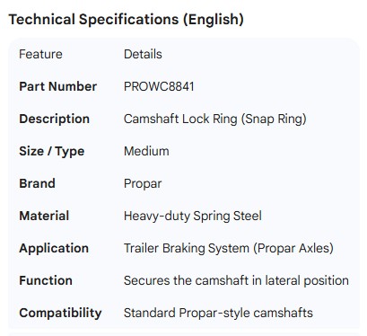 PROPAR CAMSHAFT LOCK RING MEDIUM