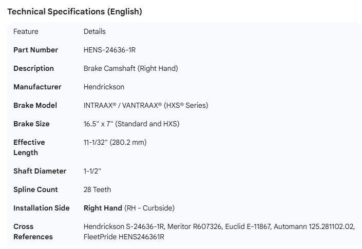 HENDRICKSON CAMSHAFT INTRAAX RH