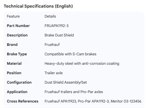 FRUEHAUF DUST SHIELD