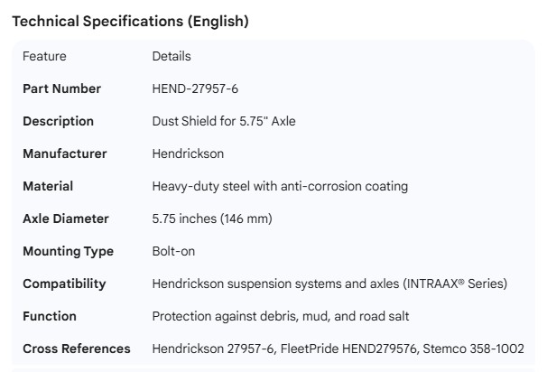 HENDRICKSON DUSTSHIELD FOR 5.75" AXLE