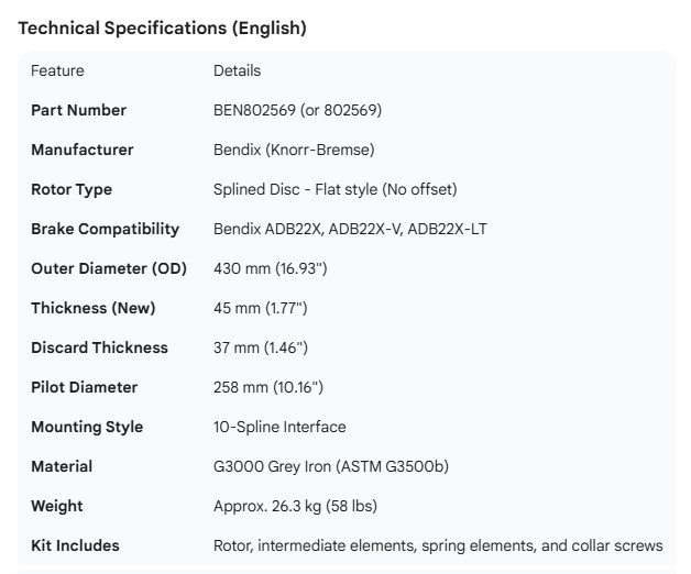 BENDIX ROTOR SPLINED DISC KIT ADB22X