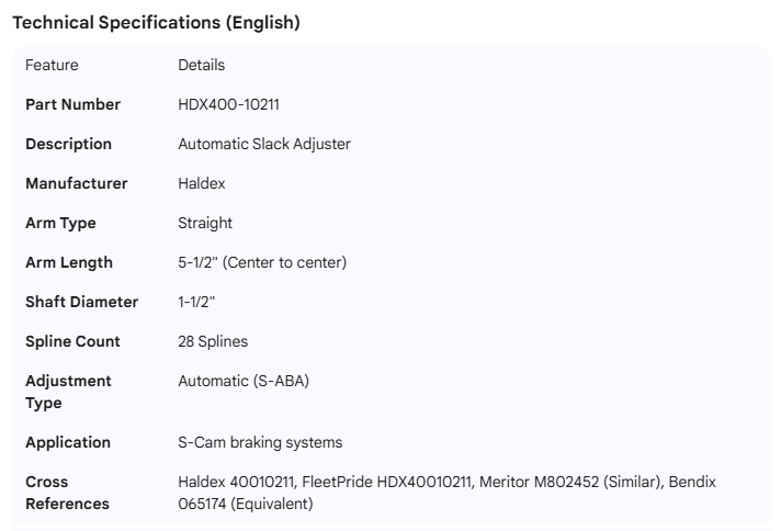 HALDEX SLACK ADJUSTER 1-1/2"- 28 SPLINE AUTO 5-1/2" STRAIGHT