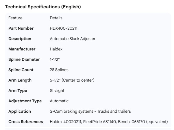 HALDEX SLACK ADJUSTER 1-1/2"- 28 SPLINE AUTO 5-1/2" STRAIGHT