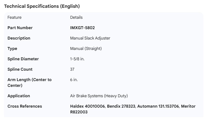 SLACK ADJUSTER MANUAL 1-5/8 37 6"
