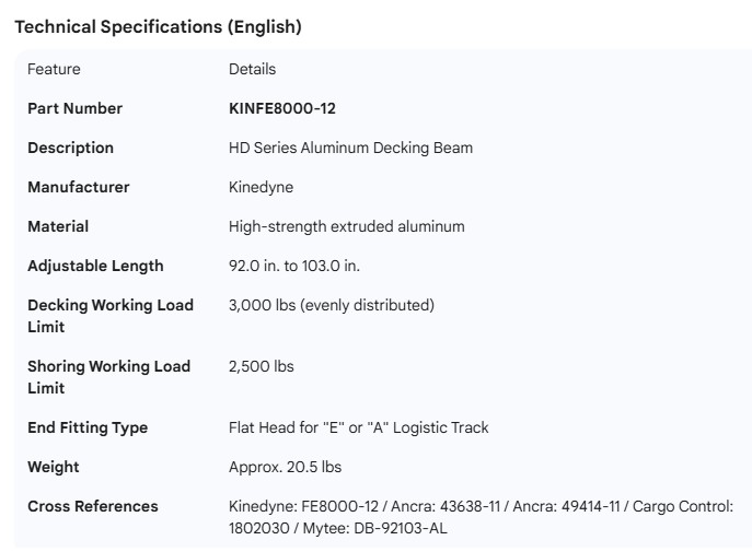 KINEDYNE HD SERIES ALUMINUM DECKING BEAM