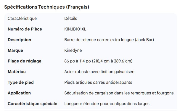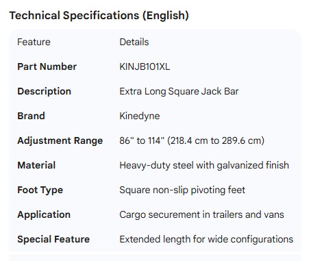 KINEDYNE EXTRA LONG SQUARE JACK BAR 86"-114"
