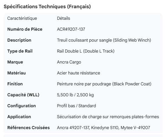 ANCRA SLIDING WEB WINCH DOUBLE L TRACK