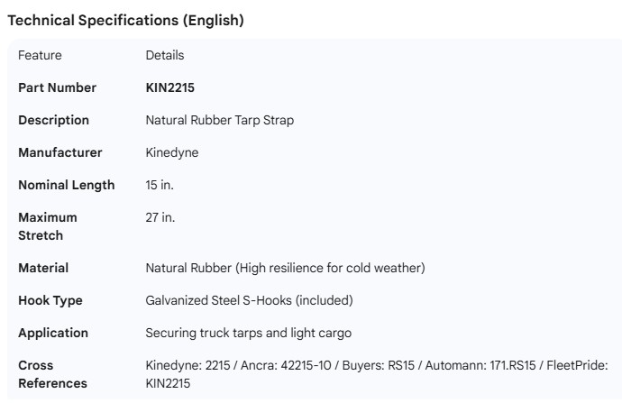 KINEDYNE TARP STRAP RUBBER TIE DOWN 15"