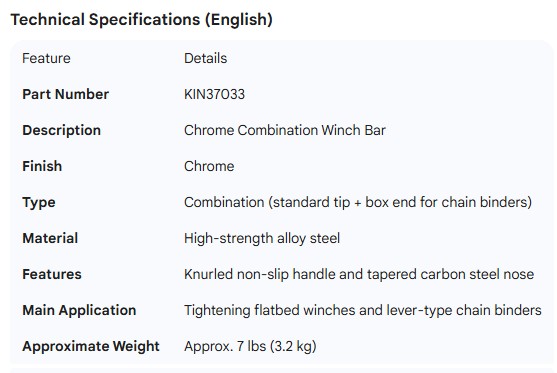 KINEDYNE WINCH BAR CHROME COMBINATION