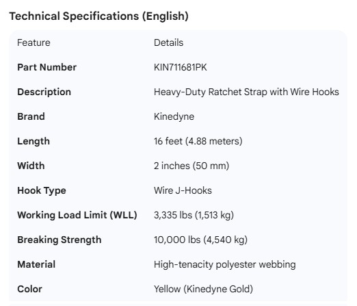 KINEDYNE HD RATCHET STRAP WITH WIRE HOOKS 16'
