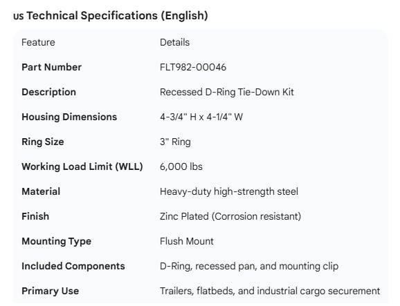 D-RING KIT 4-3/4"H X 4-1/4"W, 3" RING CLIP,6K LB WL