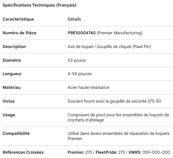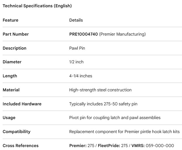 PREMIER PIN PAWL 1/2" X 4 1/4"