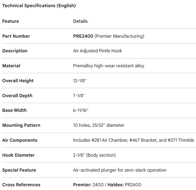 PREMIER PINTLE HOOK PREMALLOY 2-1/8" DIA (271 INCL)