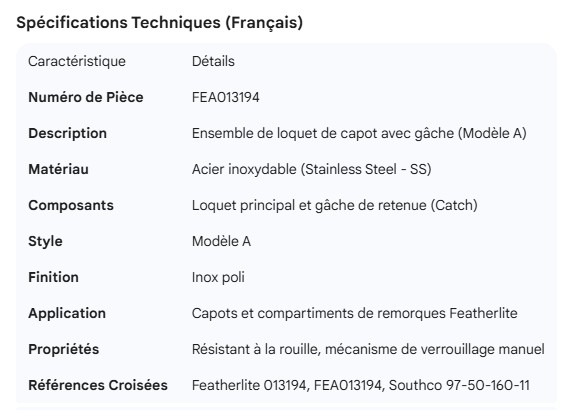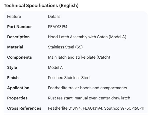 FEATHERLITE LATCH HOOD MODEL A W/CATCH SS
