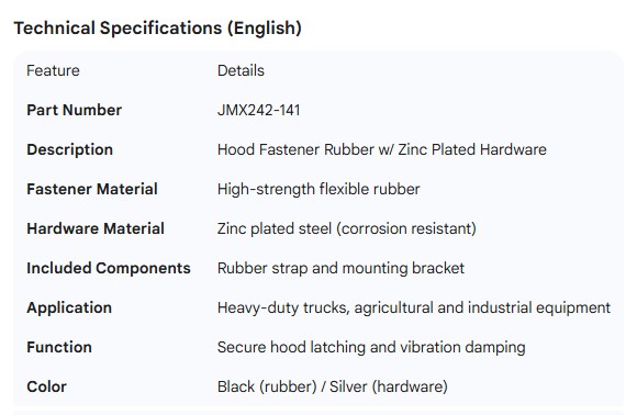 HOOD FASTENER RUBBER W/ZINC PLTD HARDWARE