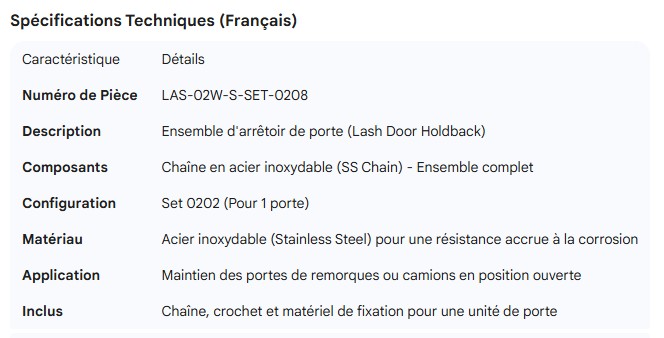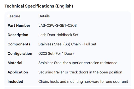 LASH DOOR HOLDBACK WITH SS CHAIN (SET)- 0202 (1 DOOR)