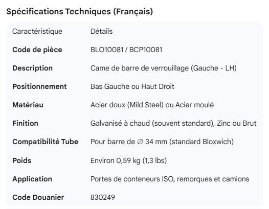 BLOXWICH DOOR ROD CAM LH