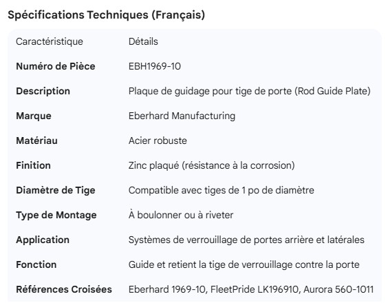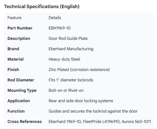 EBERHARD DOOR ROD GUIDE PLATE