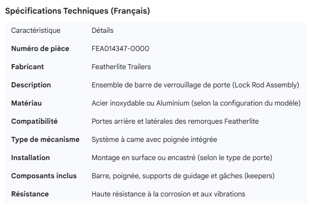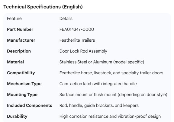 FEATHERLITE DOOR LOCK ROD ASSEMBLY