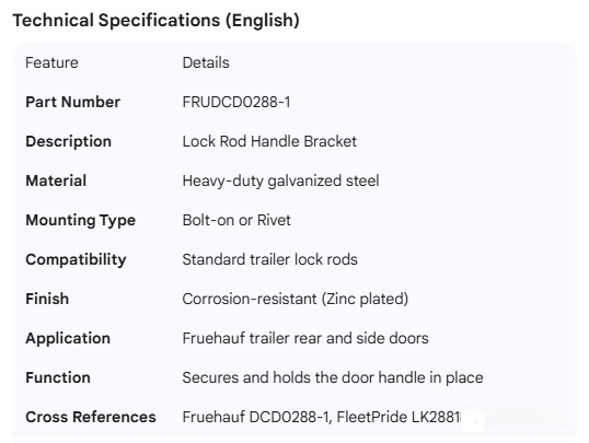 FRUEHAUF HANDLE BRACKET LOCK ROD