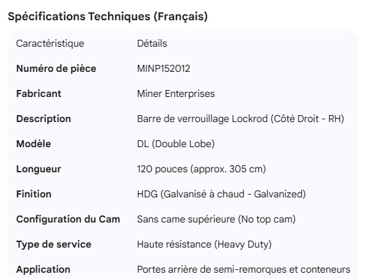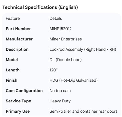 MINER LOCKROD RH DL 120" HDG NO TOP CAM