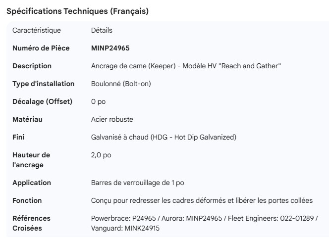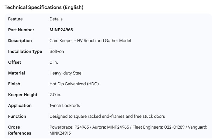 MINER DOOR CAM KEEPER HV BOLT-ON 0 OFFSET HDG